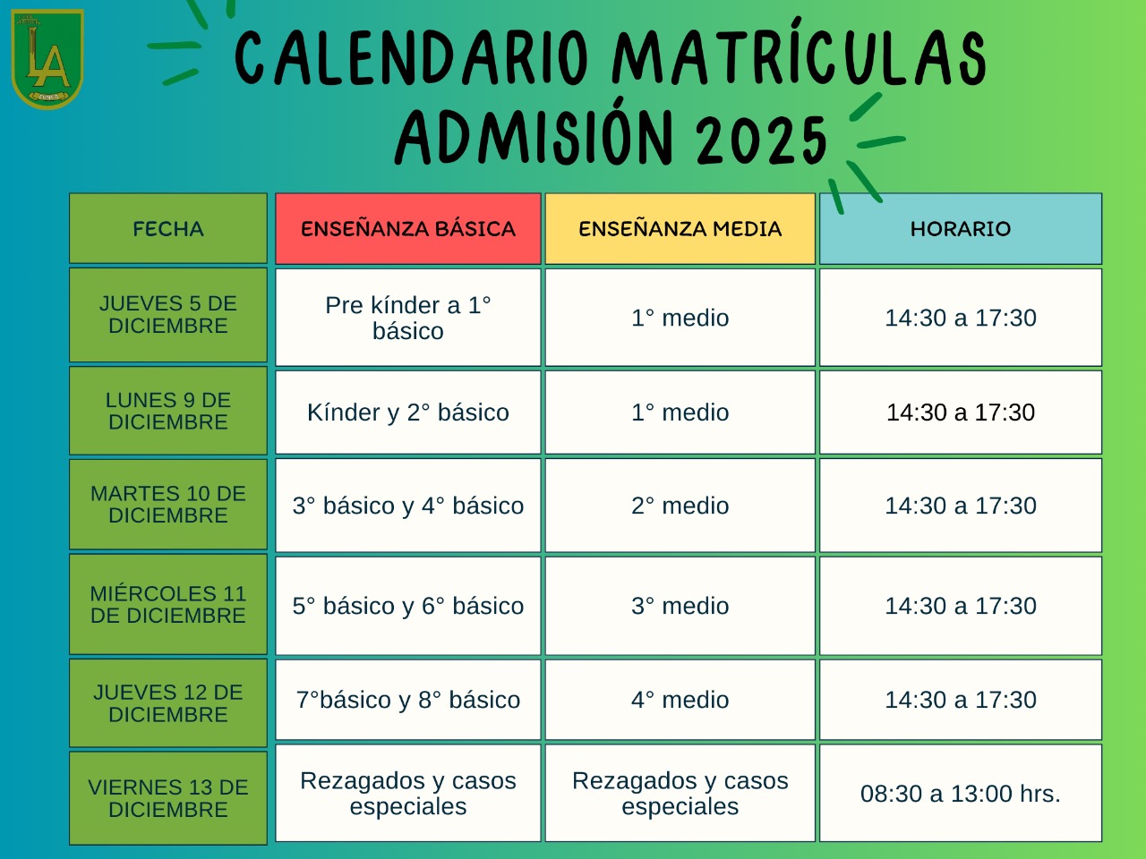 Informamos a nuestra Comunidad Educativa las fechas en las cuales se realizará el proceso de matrícula,...