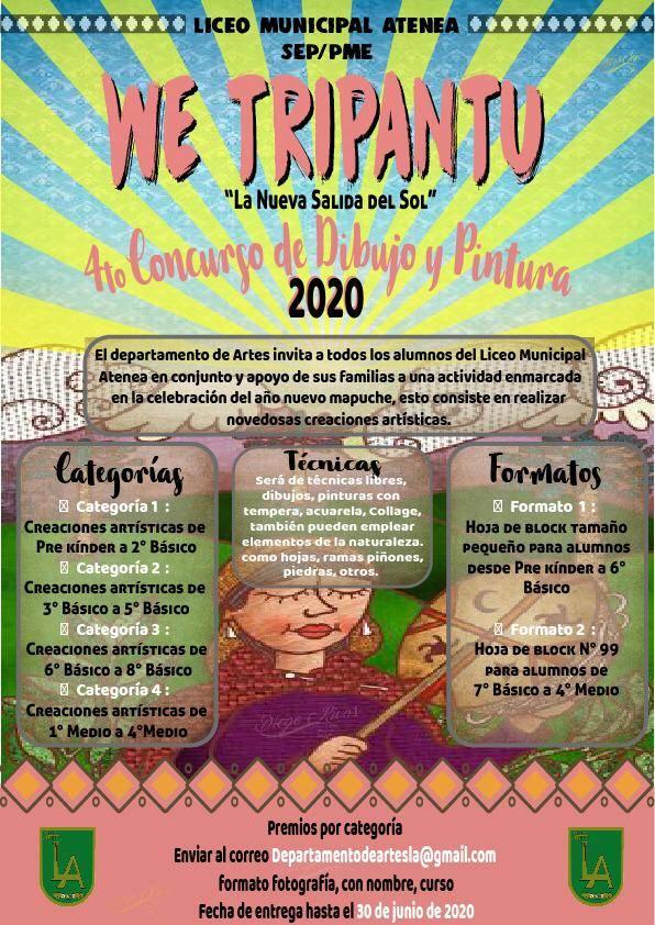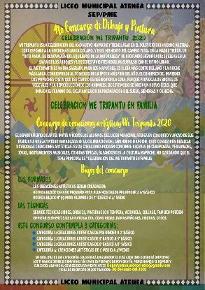 Estimados Estudiantes: El Departamento de Artes de nuestro Liceo Atenea les invita a participar en el 4° Concurso de Dibujo y pintura, alusivo a la celebración del We tripantu.
